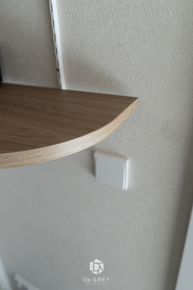 가장 눈에 띄는 부분은 계단 아래 빗각장이에요. 보통 버려지기 쉬운 공간을 수납장으로 활용하면서도 디자인적으로 포인트가 되도록 설계했습니다.